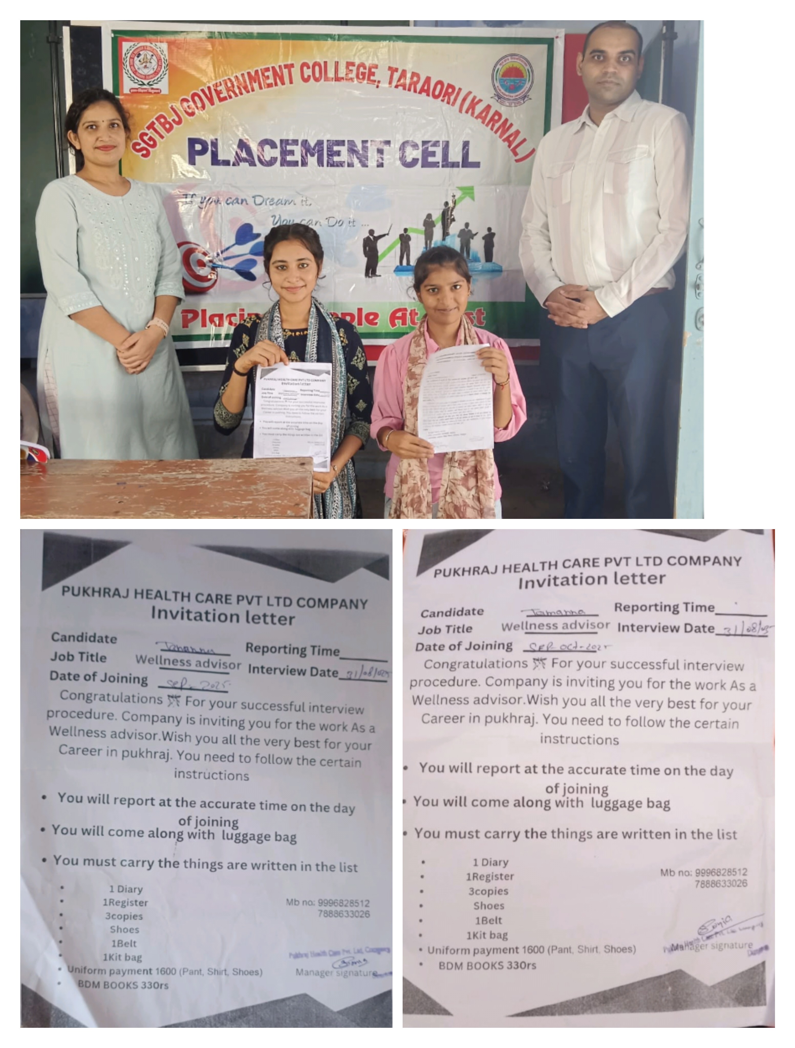 Two Students got selected by companies at Job Fair in Karnal held on 30/08/2025